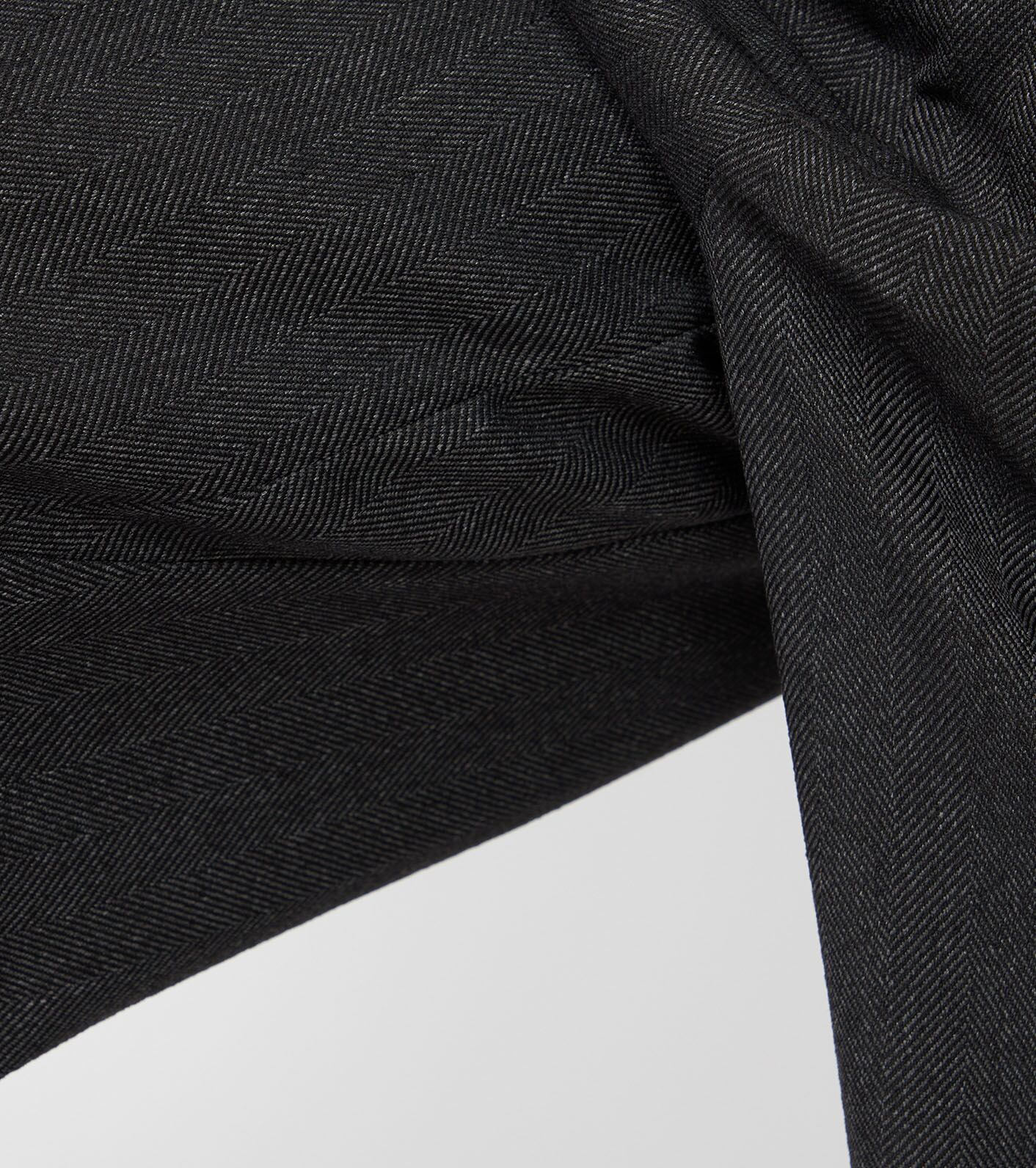 ・柄の間隔が広いオリジナルポリエステルヘリンボーン素材を使用したフィールドパンツ